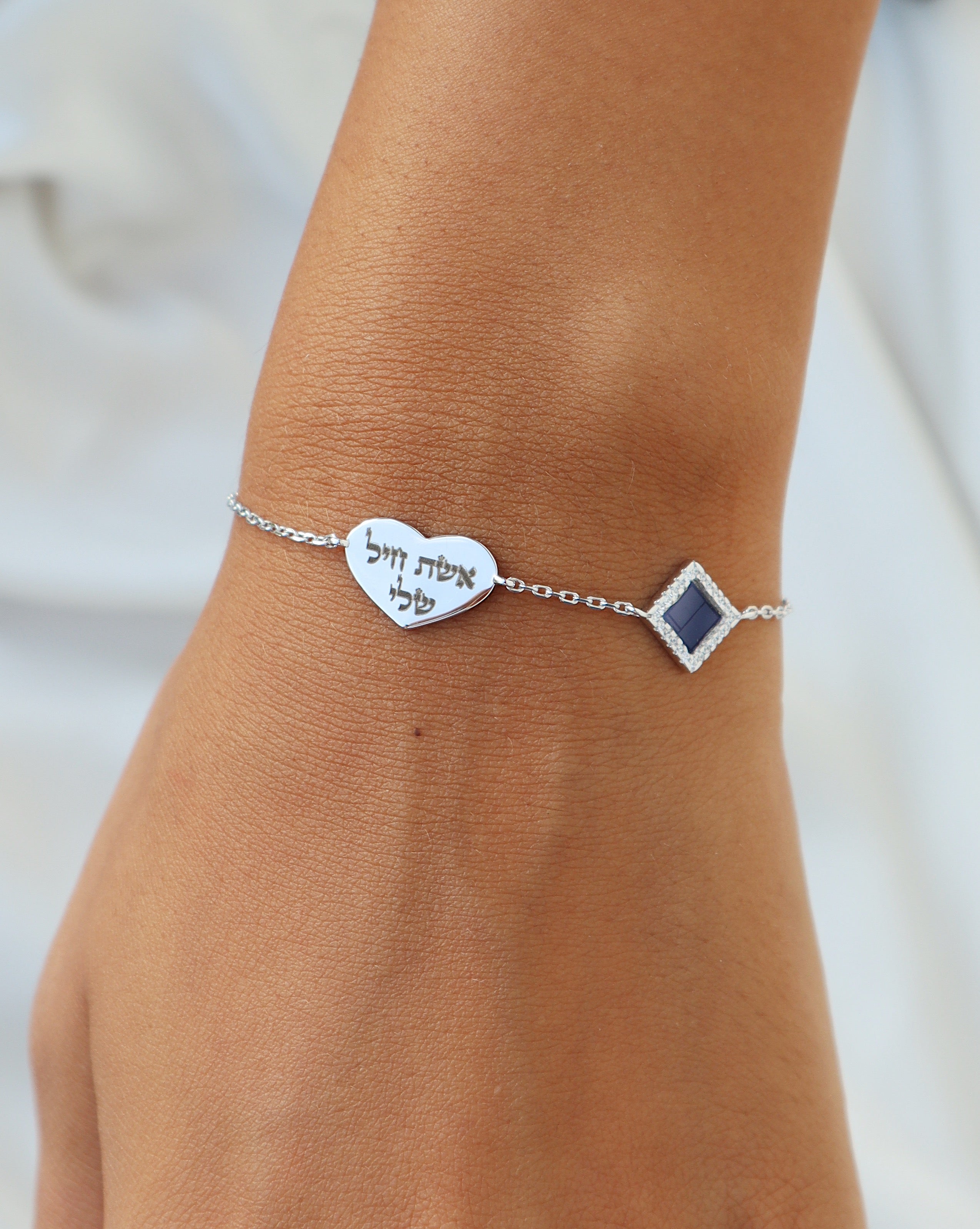 צמיד מיכאלה - חריטה עם פנינים ואבני חן לבחירה